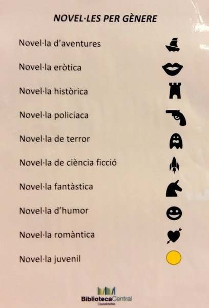 Au-delà des supports classiques, on introduit d’autres éléments plus “bricolés” : lettres découpées en cartons, dessins, collages maisons, peluches pour introduire une dimension familière : l’architecture de la bibliothèque Joan Maragall a été structurée autour de ce principe “domestique”, les salles de lectures étant comme des chambres distribuées le long d’un corridor. Les espaces sont définis par une décoration, une couleur spécifique, en particulier les secteurs “jeunesse”. On y propose des livres mais aussi des jeux, disposés derrière les banques d’accueil pour une utilisation sur place ou à domicile.