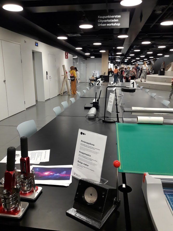 D’ailleurs, l ’Atelier urbain faisait déjà partie de la bibliothèque municipale d’Helsinki à son ouverture en octobre 2013, en préfiguration de la nouvelle bibliothèque Oodi. Les usagers ont été impliqués dès le début dans le projet et ont pu proposer des thèmes d’ateliers. Aujourd’hui, des associations viennent avec leurs bénévoles animer des ateliers plusieurs fois par semaine dans différents espaces de la bibliothèque.