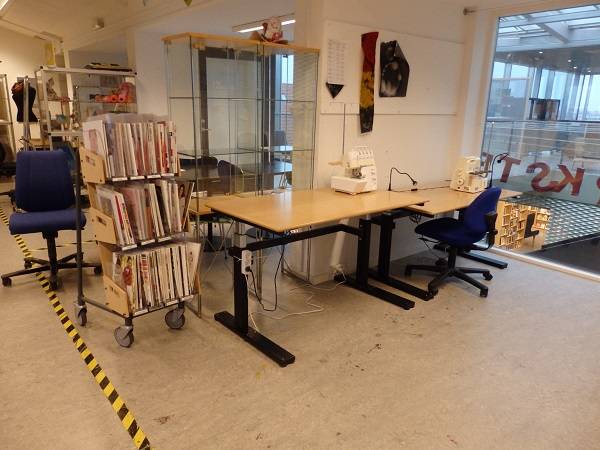 Dans la partie ancienne est situé un espace atelier, avec du matériel pour des activités aussi diverses que la couture, le tricot, les arts graphiques, avec possibilité d’impression. Des ateliers ont lieu plusieurs fois par semaine autour de, et sont gérés un agent de la bibliothèque en lien avec des bénévoles spécialistes de ces techniques. Cet espace rencontre le succès, car il permet par exemple d’utiliser les machines à coudre pour une somme modique (2 dkr/an).